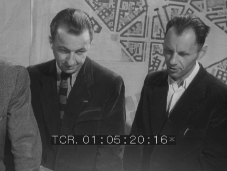 | 00:00:16:00 | Architekci podczas pracy nad planami rozbudowy Garwolina. Kierownik pracowni, inż. Kazimierz Wejchert, jego zastępczyni Hanna Adamczewska i studenci oglądają fotografie. |