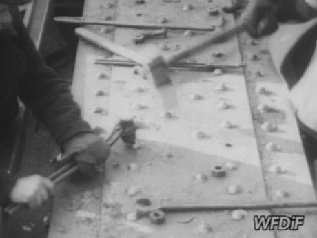 Doskonałe wyniki w pracy nad odbudową mostu daje inicjatywa społeczna. Ten wesoły pochód zgromadził studentów Politechniki Krakowskiej, którzy zgłosili się ochotniczo do pracy nad odbudową zniszczonego przez Niemców mostu na Wiśle. Przyszli inżynierowie znakomicie ułatwili sobie pracę, budując prowizoryczne dźwigi do transportowania kamieni. W ten sposób zapełnia się groźną wyrwę po niemieckiej minie.
