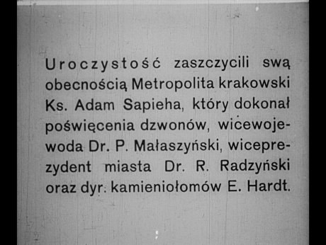 | 00:00:01:01 | Plansza tekstowa: "PROCESJA MARJACKA W KRAKOWIE". W oktawę Bożego Ciała procesje ze wszystkich kościołów krakowskich łączą się pod świątynią Marjacką w jedną wspólną procesję, która obchodzi rynek dookoła. |