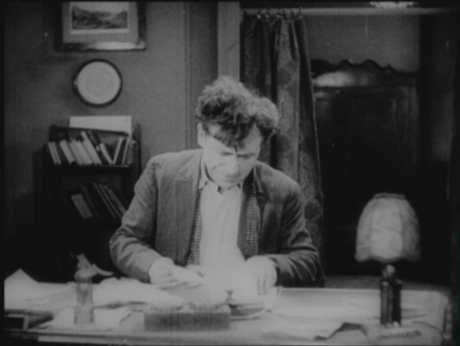 Robak umiera. Na łożu śmierci wyznaje swą straszliwą tajemnicę, tajemnicę swego rozdwojenia się w postacie Jacka i Robaka. U stóp kwestarza klęczy Pan Tadeusz. Twarz umierającego promienieje jakimś blaskiem wewnętrznym, jest uduchowiona tak ogromnie, że obecni przestają rozróżniać już pomiędzy rzeczywistością a twórczą wizją. Stojące za reżyserem Zosia i Telimena cicho płaczą. Operator Wawrzyniak majstruje coś ręką koło oczu, które są dziwnie zaczerwienione. Reżyser Ordyński przestaje już podpowiadać słowa Szymańskiemu i tylko gestem i oczyma kieruje sceną. Po ukończonej scenie przystępuje do Robaka i całuje go mocno w oba policzki. Pan Tadeusz klęczy wciąż z twarzą, ukrytą w dłoniach.Pierwsze, co się rzuca w oczy, to cudowny szpinecik czy klawikord. Potem reszta: przepiękne złocone empirowe krzesła i kozetki, na ścianach sztychy z jakiemiś alegorycznemi albo bardzo nęcąco zbudowanemi nagiemi kobietami, i miniatury na szkle, na klawikordzie świeczniki, wykładane masą perłową. W pokoju Pan Tadeusz, rozglądający się ciekawie po powrocie do długo nieodwiedzanego domu. Przez okno wbiega prześliczne dziewczę, Zosia – p. Zajączkowska w długiej białej sukience (»w takiej Litwinka tylko chodzić zwykła z rana, w takiej nigdy nie bywa od mężczyzn widziana«). Pan Łuszczewski ujrzał Zosię. »Skromny młodzieniec oczy zmrużył i przysłonił… Dziewica krzyknęła boleśnie«. Był w tem jakiś czar niewinności, roztaczany przez te świetną artystkę, czar prostoty, której już dziś nie znamy. I dziwnym zrządzeniem losu, niemal o jednym czasie w tym pokoju rozegrała się po pierwszej, ostatnia scena »Pana Tadeusza« i ta, gdy Telimena mizdrzy się przed lustrem, strojąc się na swój ślub z Rejentem. Stara kokietka!”.